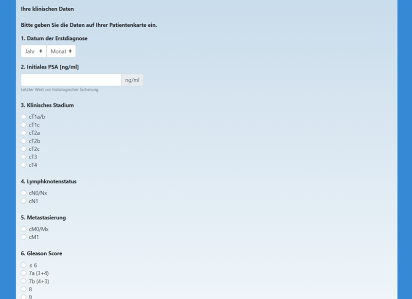 Unser Angebot möchte auf Ihre individuelle Situation eingehen. Wir bitten Sie daher an bestimmten Stellen um persönliche Angaben. Zum Schluss erstellen wir für Sie eine Zusammenfassung, die Sie für sich selbst verwenden und ausgedruckt zum Arztgespräch mitnehmen können. Die Zusammenfassung kann Sie bei dem Beratungsgespräch und der gemeinsamen Entscheidungsfindung mit Ihrem Arzt unterstützen.